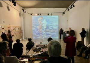 La galería INDER Espacio, dirigida por Luisa Díaz, organizó un acto interactivo y creativo a partir de una exposición sobre las paredes de la galería forradas de papel de estraza (evocando al barro) que los asistentes fueron rellenando con recortes realizados por diversos artistas que representan casas, arboles, puentes, ríos, escuelas, huertas… que al insertarse simbolizarán acciones para resurgir y restaurar las poblaciones afectadas por las riadas.